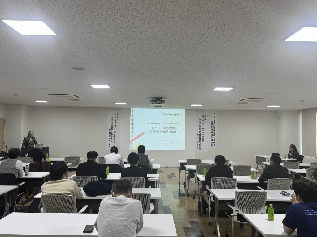睡眠医療センター開設5周年記念講演会を開催いたしました。 2025.12.08 朝日大学病院睡眠医療センター開設5周年記念講演会を2025年11月29日朝日大学病院西館ホールで開催いたしました。 睡眠医療センターの医科歯科連携現状報告の後、「こどもの睡眠」をテーマとし大阪大学大学院歯学研究科顎顔面口腔矯正学講座の白石優季先生に「矯正医としてみる小児の睡眠」、大阪大学連合小児発達学研究科の谷池雅子先生に「子どもの睡眠の課題-乳幼児から思春期までー」として 歯科医科両面からのこどもの睡眠について講演をいただきました。子供の睡眠時無呼吸は顎顔面形態との関与が強いこと、また3歳までの睡眠の問題はその後人生を通じて影響を及ぼすため正しい睡眠習慣を身につけることの大切さなどを学びました。 今後も診療と並行して地域の睡眠リテラシーをあげるべく活動をつづけてまいります。