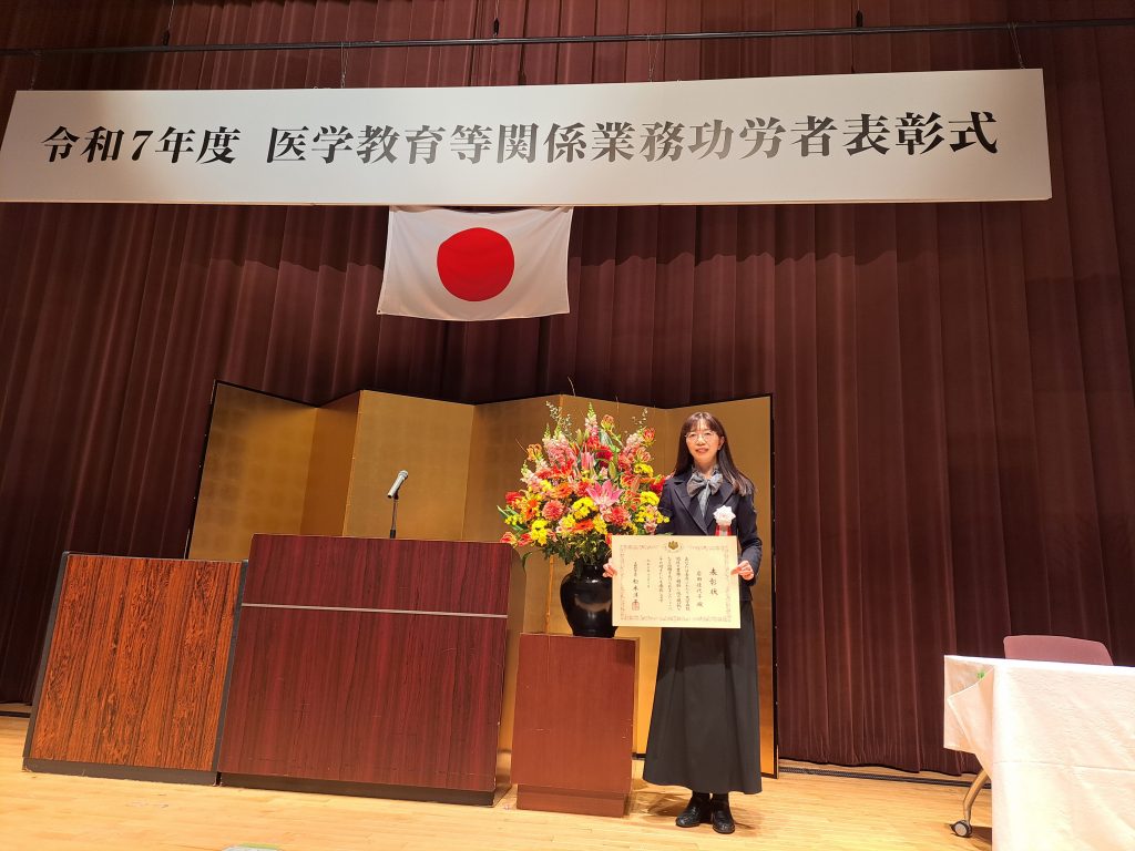 令和7年度の医学教育等関係業務功労者として、本院薬剤部の岩田佳代子薬剤師主任が表彰されました。